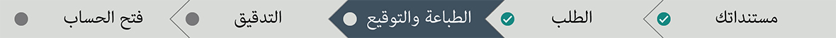 يرجى الدخول إلى بوابة فتح حساب الشركات وتنزيل مجموعة بياناتك النهائية ومن ثم طباعتها والتوقيع عليها وإرجاعها لنا. وبمجرد تلقينا مستندات الموقعة سنستغرق مدة 7 أيام عمل لمراجعة والتحقق من معلوماتك قبل دعوتك للمرحلة التالية.