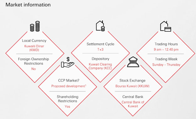 HSBC Bank Middle East in Kuwait was one of the first international banks to be established in the country when foreign bank licenses were granted in 2005. HSBC Kuwait commenced operations on 2 October 2005 and was the 10th Middle East market to be added to HSBC’s global DCC network effective from 31 October 2005. Until 2011, we were the sole international custodian in the Kuwait market and as such have been closely associated with the development of the securities market infrastructure in Kuwait. Our Kuwait operation offers a full range of custody and securities services to foreign institutional investors (FIIs) and is currently the largest provider in the market with a very substantial share of assets of FIIs.